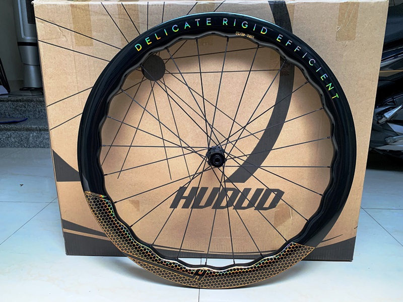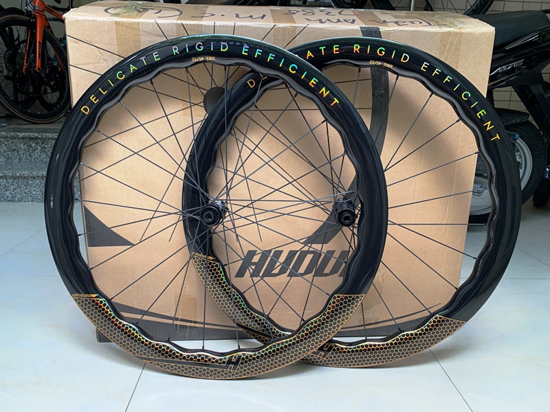 Bộ vành (bánh) xe đạp đua DELICATE gợn sóng bằng carbon cao cấp, thắng dĩa center lock